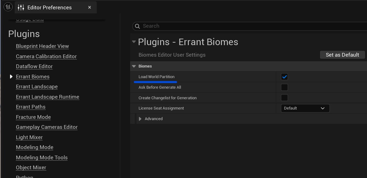 - Added option to disable World Partition loading during generation. Errant Biomes loads the required World Partition area automatically, but the plugin cannot always tell if the area is already loaded. This can lead to loading the same area twice, so in some cases it's faster to disable this feature and rely on manual loading. This option can be found under